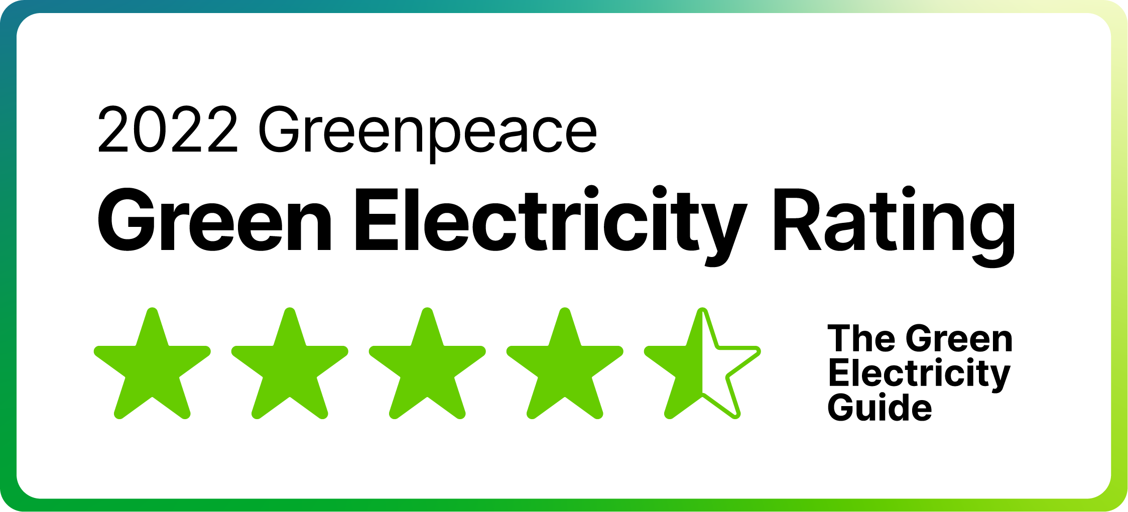 We’re rated one of the greenest power providers in the 2022 Greenpeace Green Electricity guide.